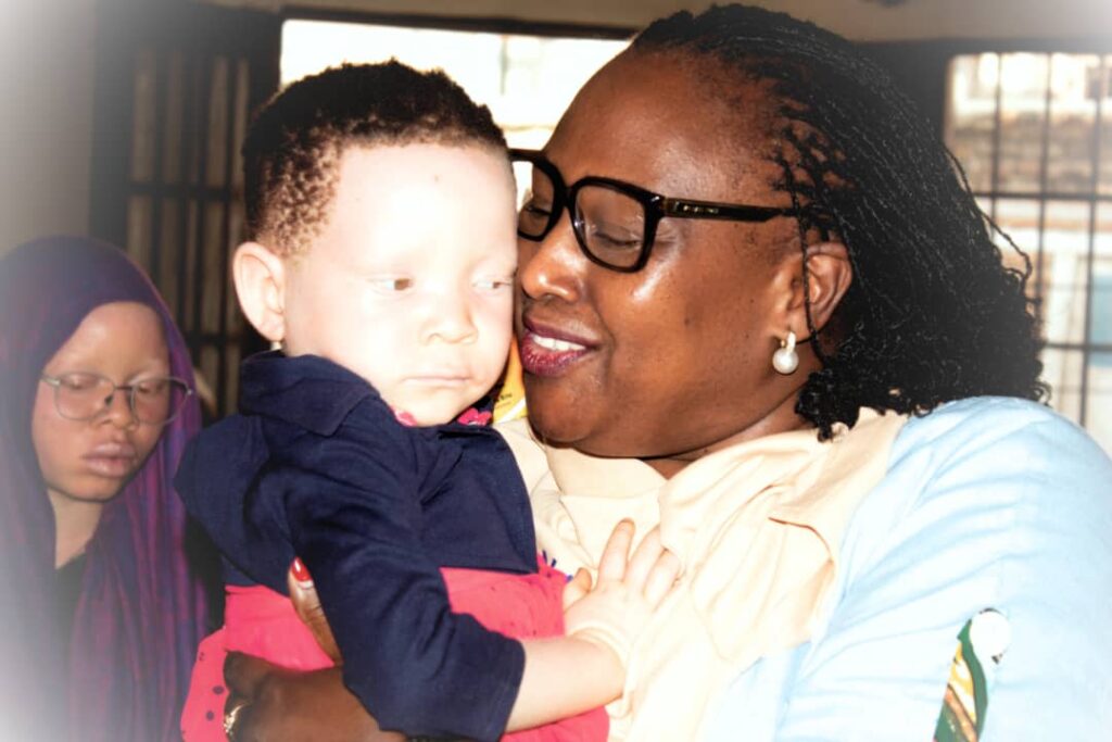 Photo de famille après la distribution des kits scolaires aux 96 élèves atteints d’albinisme par Uwundi nawe Asbl et ce , grâce au don octroyé par la commune de Boom en Belgique.